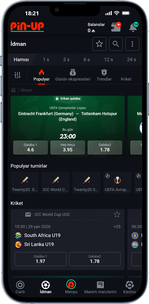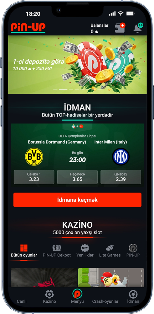 Pin-up casino indir Azərbaycanda mobil cihazınızda oyunlara və idman mərclərinə giriş təmin edir. Proqram həm Android, həm də iOS-da işləyir və sizə 6,000-dən çox oyuna, həmçinin matçdan əvvəl və canlı mərc bazarlarına giriş imkanı verir. Quraşdırma cəmi bir neçə saniyə çəkir və proqram hətta məhdud RAM-a malik köhnəlmiş smartfonlarda belə yaxşı işləyir.