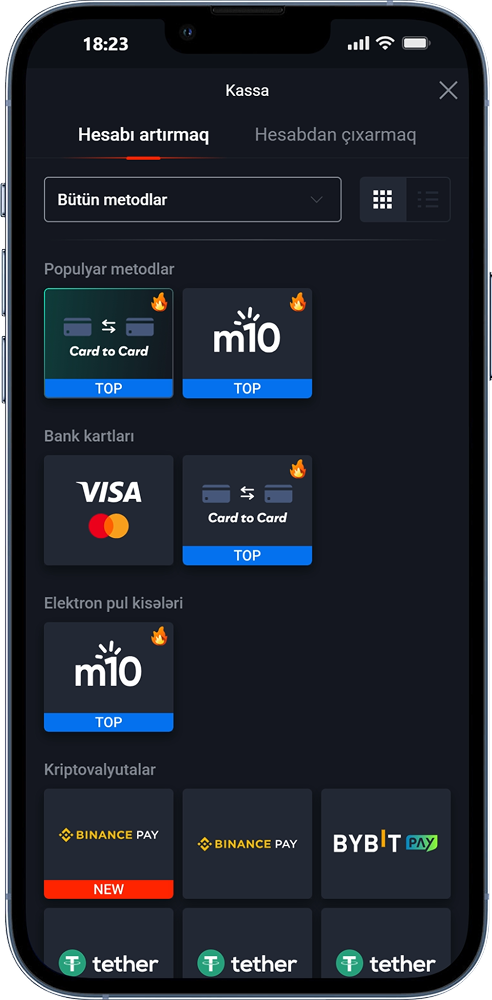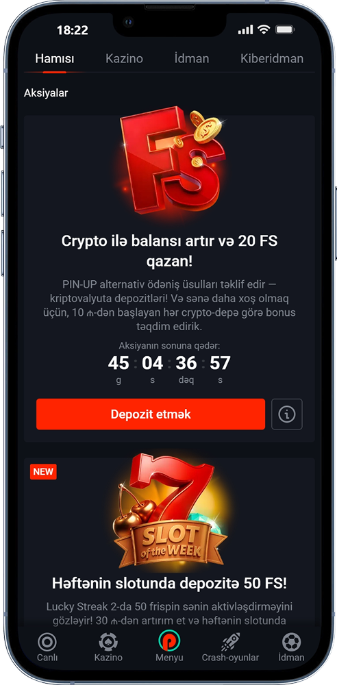 Bəli, PinUp proqramı Visa, Mastercard, SmartPay, eManat, Milli, kripto və e-cüzdanlardan istifadə etməyə imkan verir. Minimum depozit məbləği 3 AZN-dir və ən azı 22 AZN çıxara bilərsiniz.